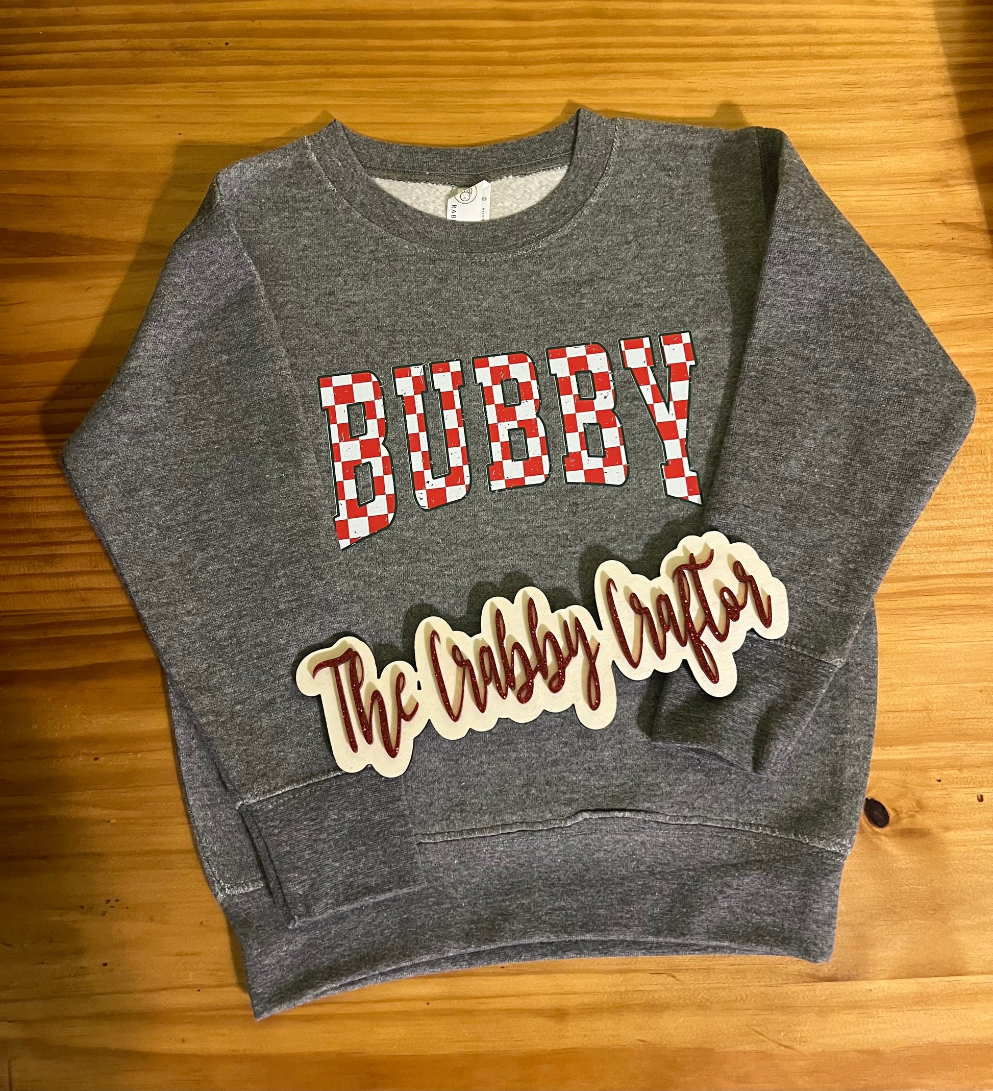 Rabbit skins sweatshirts dark gray or light gray are pictures. Red, green, and white checkered "bubby"